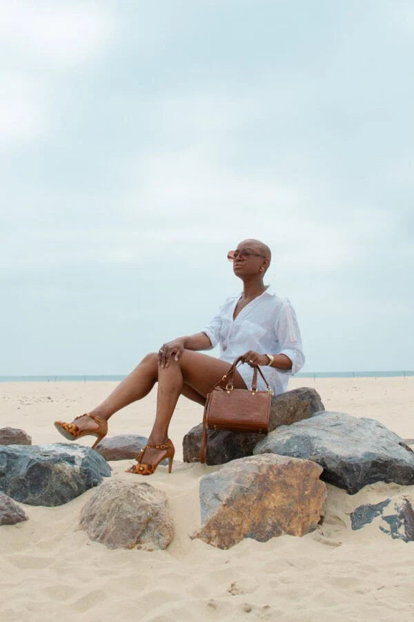 Les sacs Himba sont également uniques. Ils sont ornés des tissus tels que le Bogolan, le Jacquard, le Faso Dan Fani, le Kente et le Wax en cuir soigneusement sélectionnés, ajoutant une touche de culture unique à n’importe quel look.