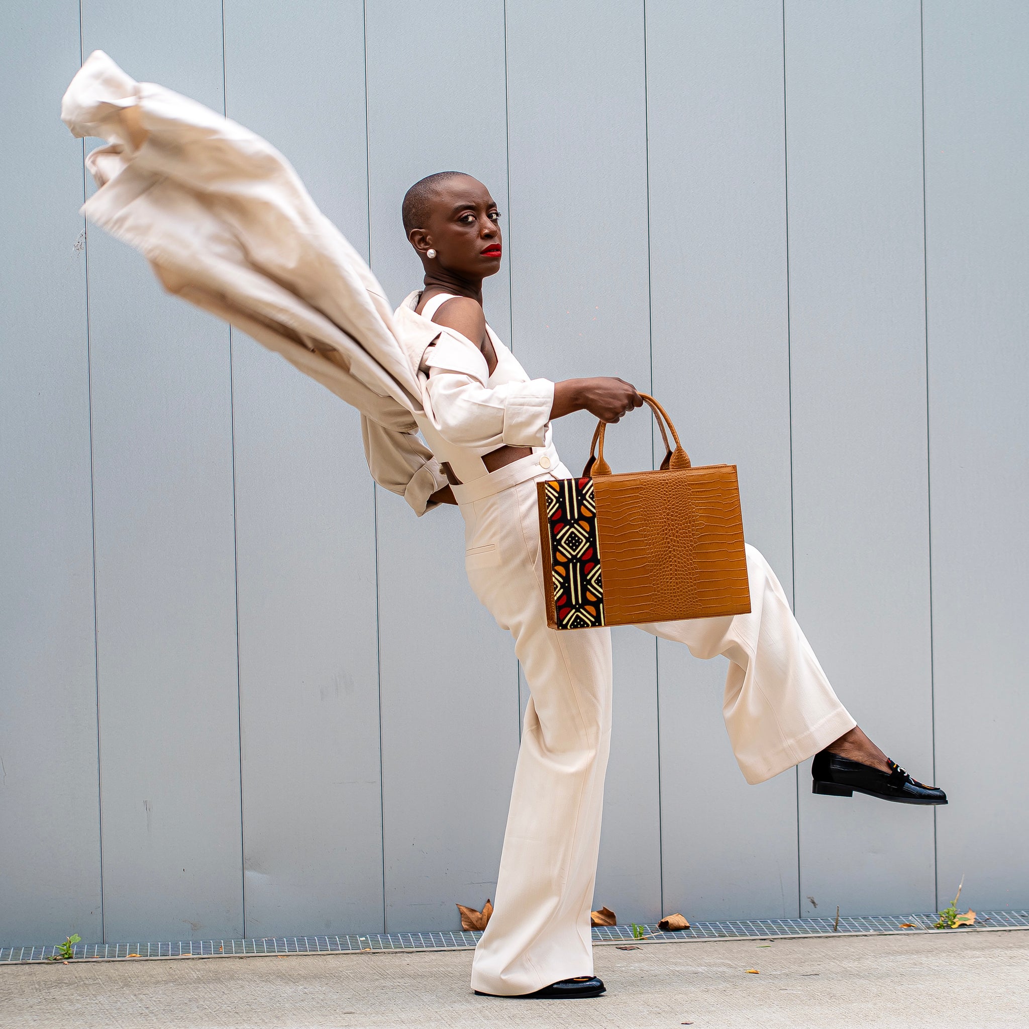 Les sacs Himba sont également uniques. Ils sont ornés des tissus tels que le Bogolan, le Jacquard, le Faso Dan Fani, le Kente et le Wax en cuir soigneusement sélectionnés, ajoutant une touche de culture unique à n’importe quel look.
