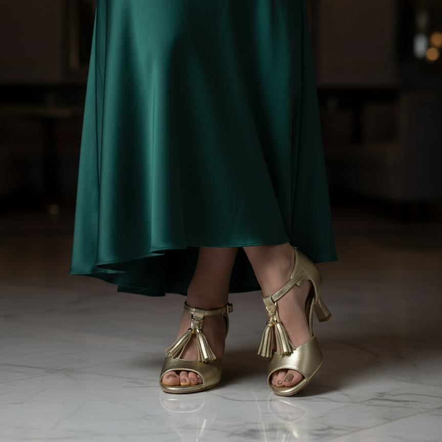 Pensés pour la danse, mais pas seulement, les NYOTA sont idéals pour une cérémonie, une soirée spéciale, ou pour illuminer une tenue plus sobre. Leur cuir doré capte la lumière avec subtilité, ajoutant une touche de sophistication sans excès.