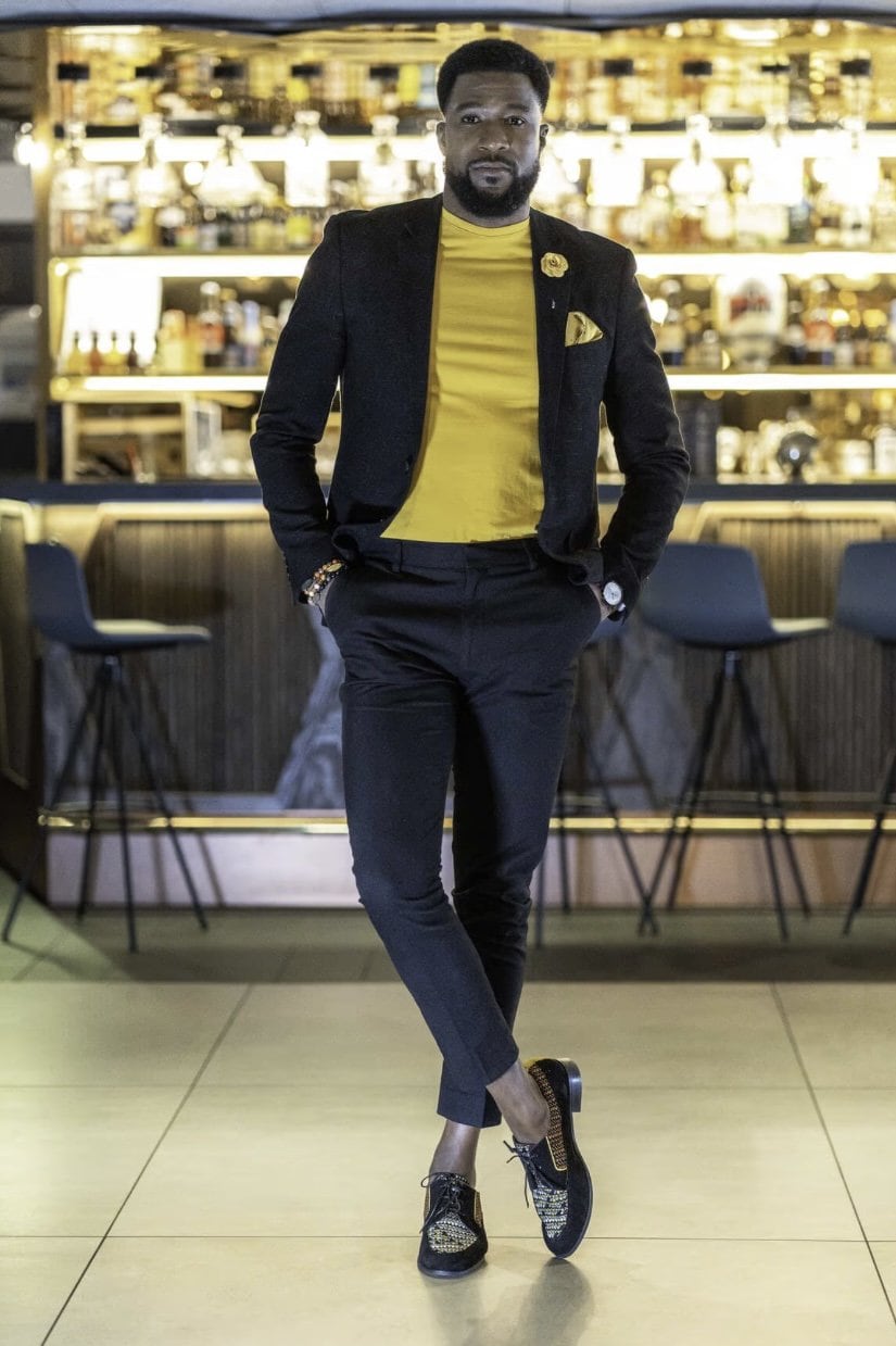 Couleur: Noir et tissu multicolore, touche de jaune