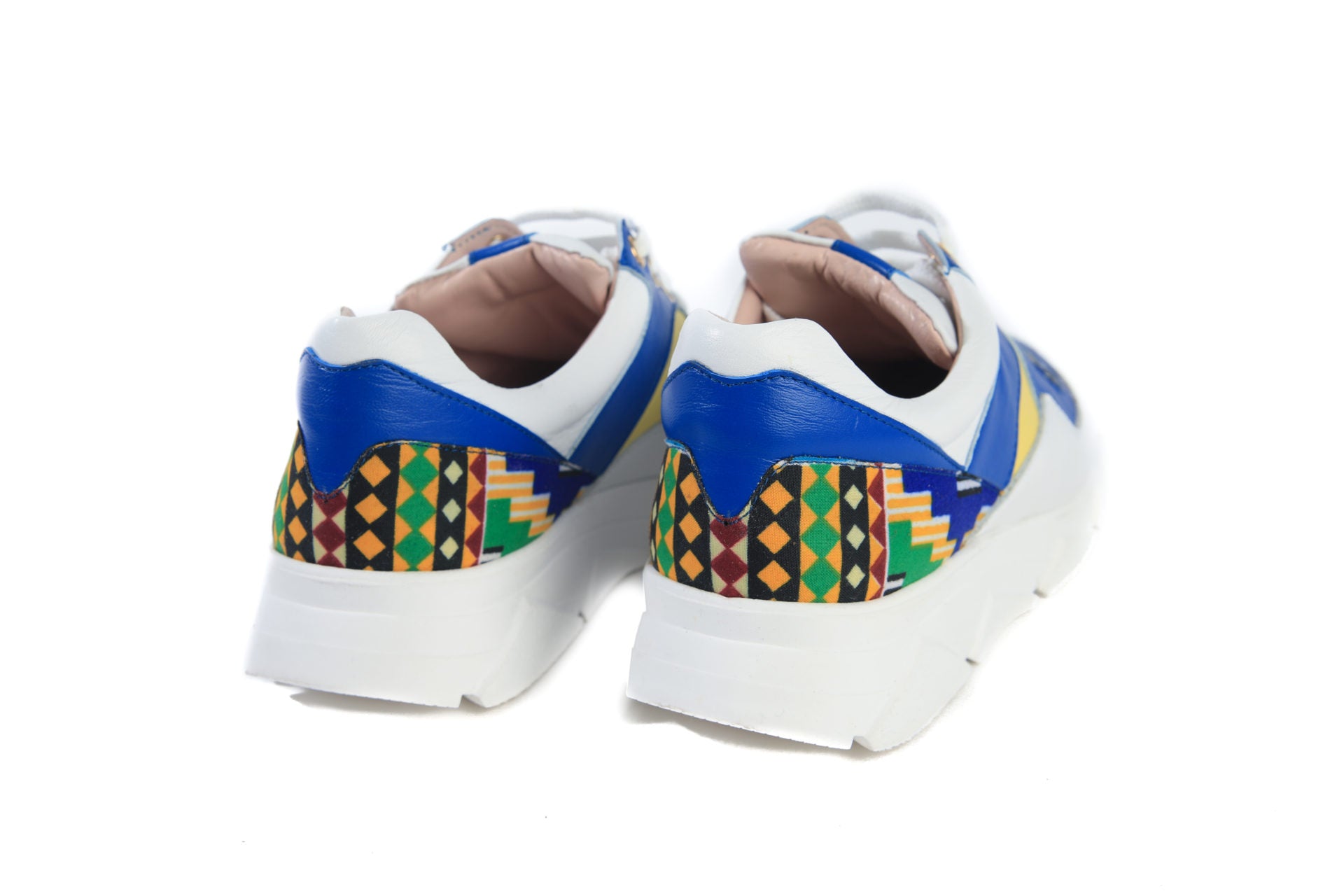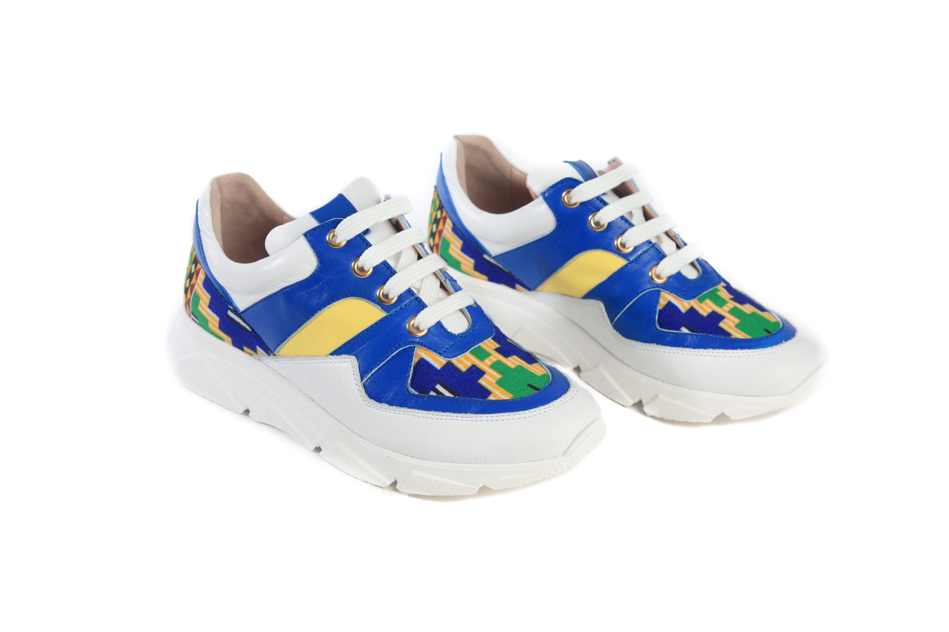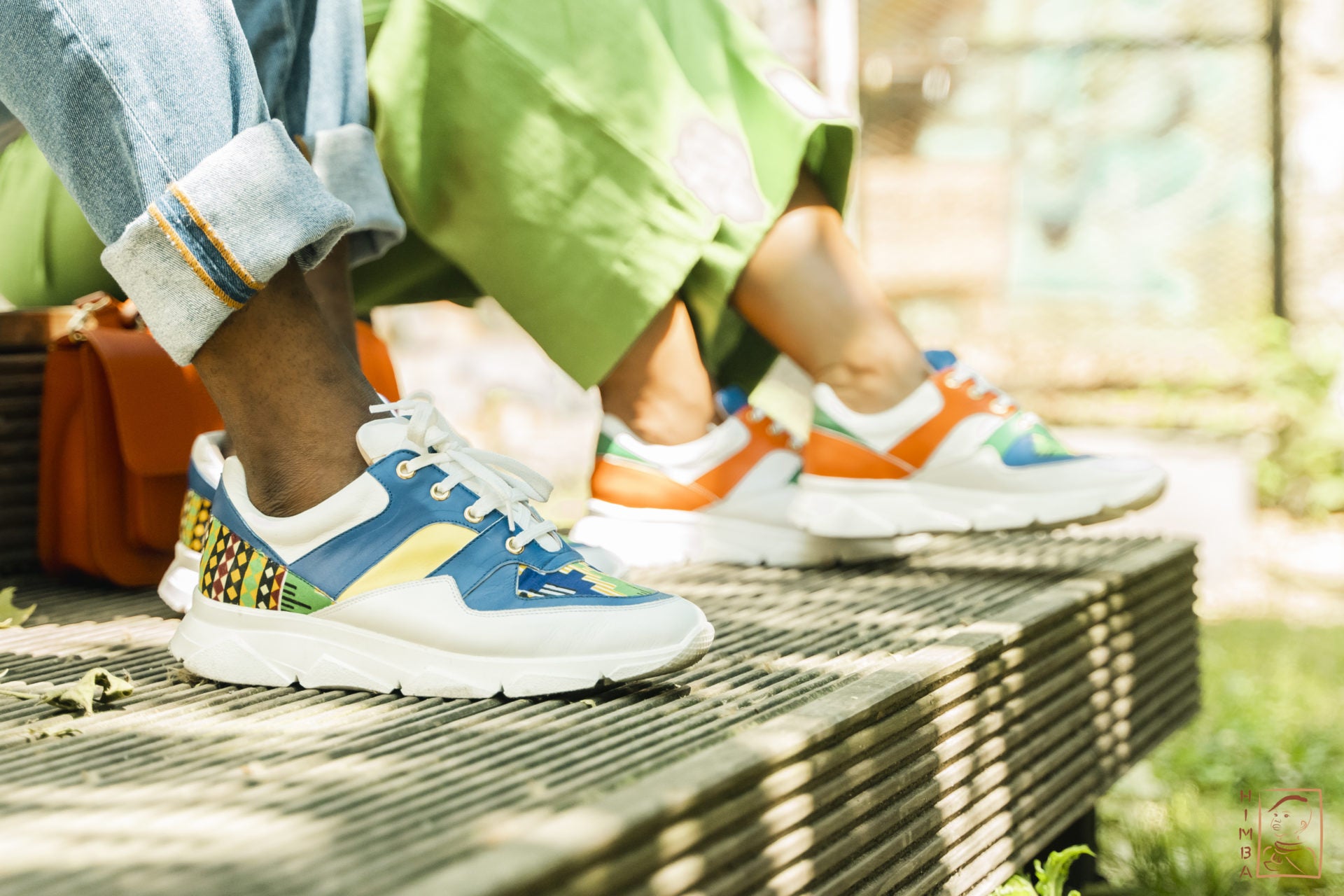 Ténis KETKBOU em pele e tecido étnico encerado.