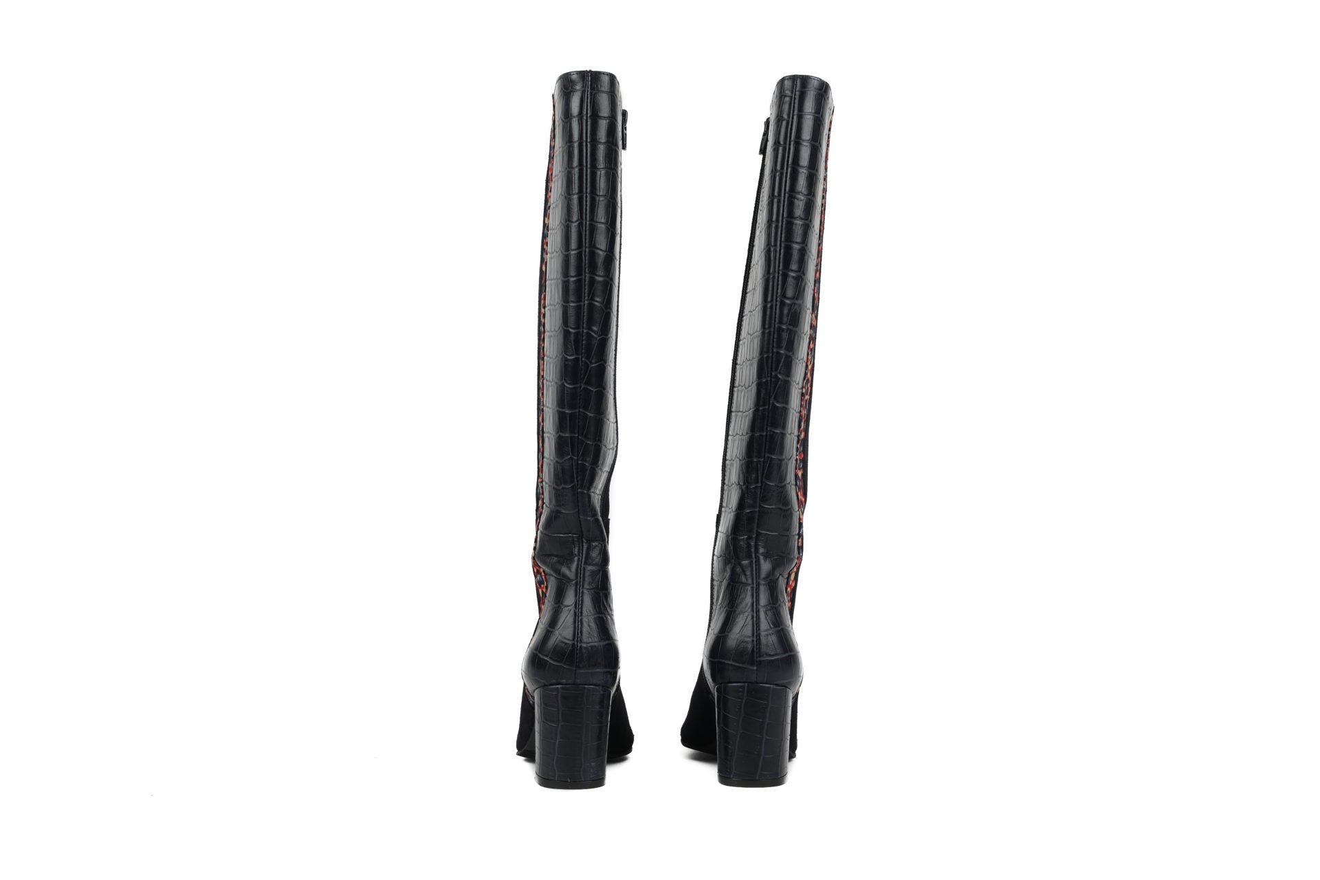 As botas SKINBA são o resultado de um trabalho artesanal excecional, onde cada costura conta uma história e cada detalhe é uma obra de arte. Camurça genuína, pele de crocodilo e tecido estampado multicolorido entrelaçam-se para criar uma obra-prima a cada passo.